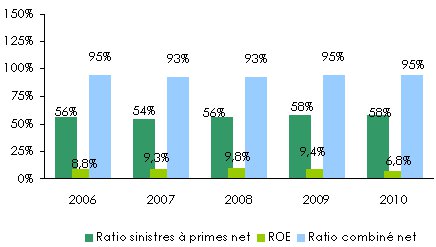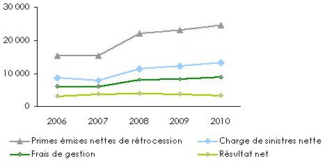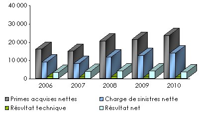 Evolution des primes, sinistres, frais de gestion et résultats: 2006-2010